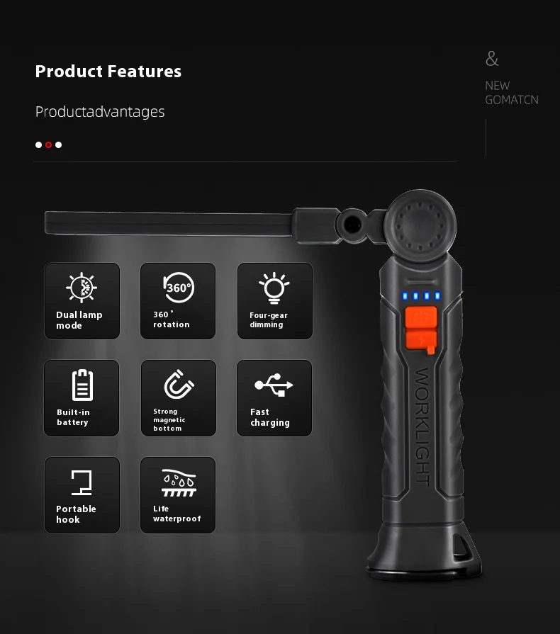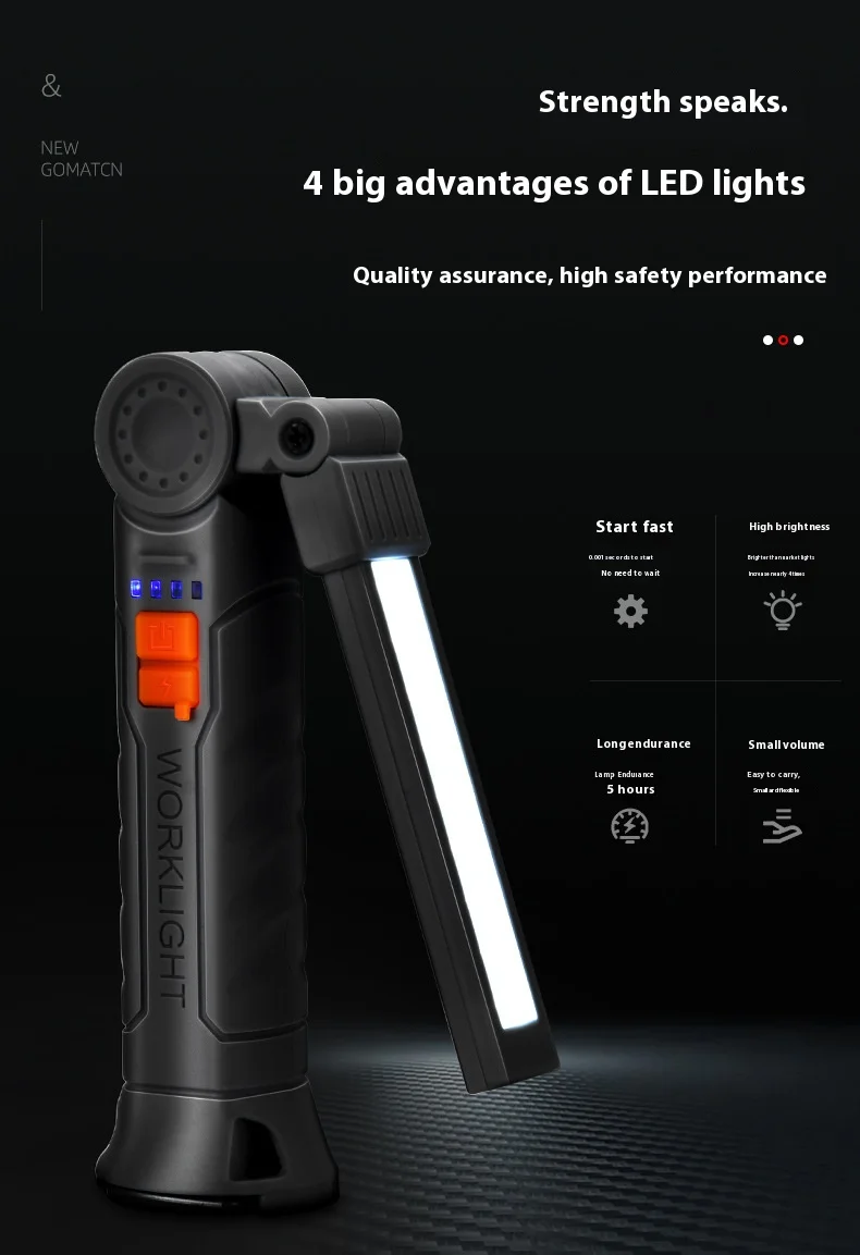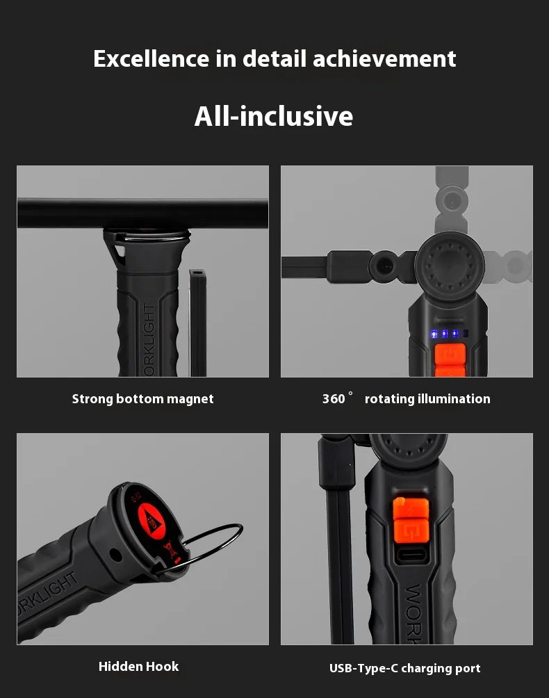 -Mutifunction:This handheld flashlight has Unique 360 degree rotate design provide multi-angle illumination. It can adsorbe on the surface of any steel products,is very convenient for you to do some repairing jobs. The hook is also suitable for you to put this work light in any place and make your hand free.