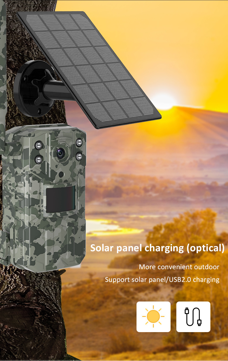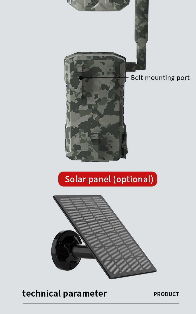 Solar + built-in lithium battery power supply (external solar panel or power adapter optional ) |