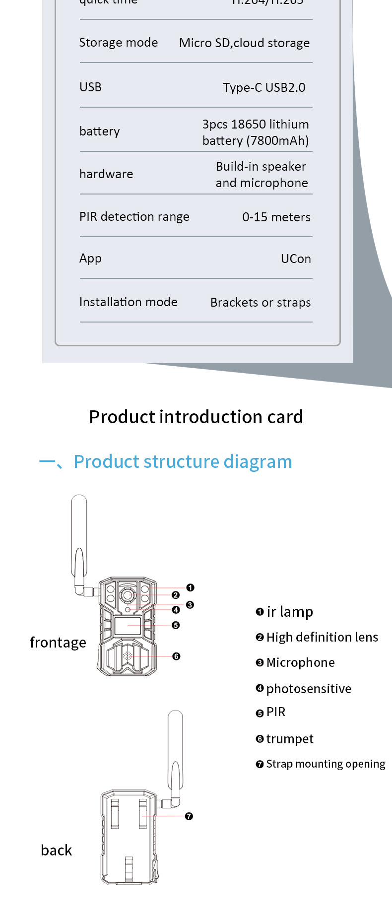 Solar + built-in lithium battery power supply (external solar panel or power adapter optional ) |