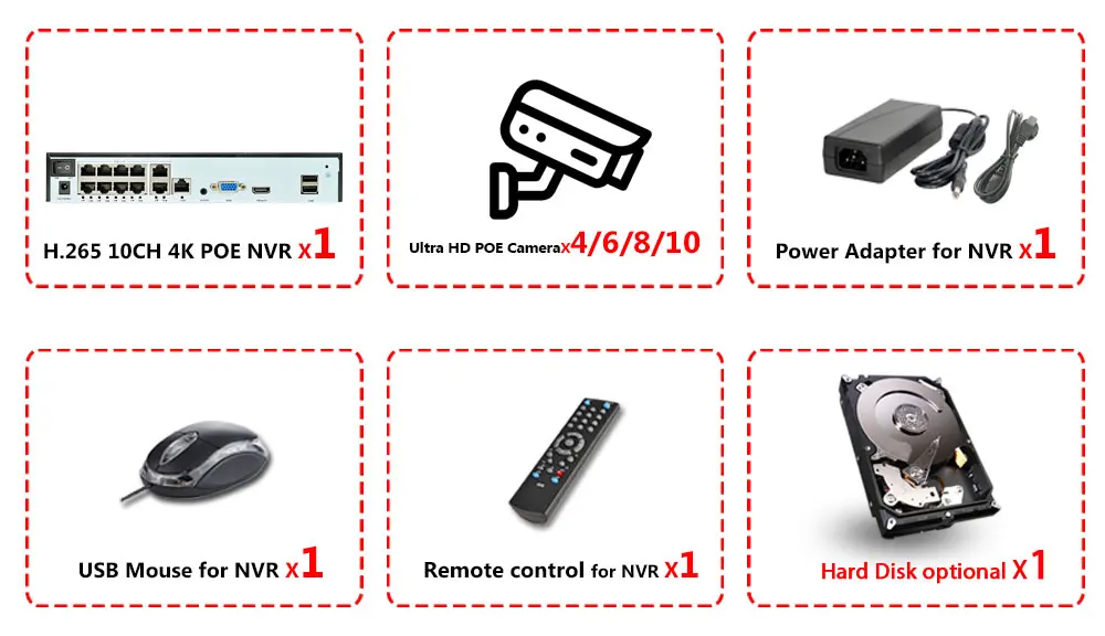 2/4/6/8/10 x H.265 HD 8mp POE IP indoor outdoor IR Day Night vision weatherproof cameras;