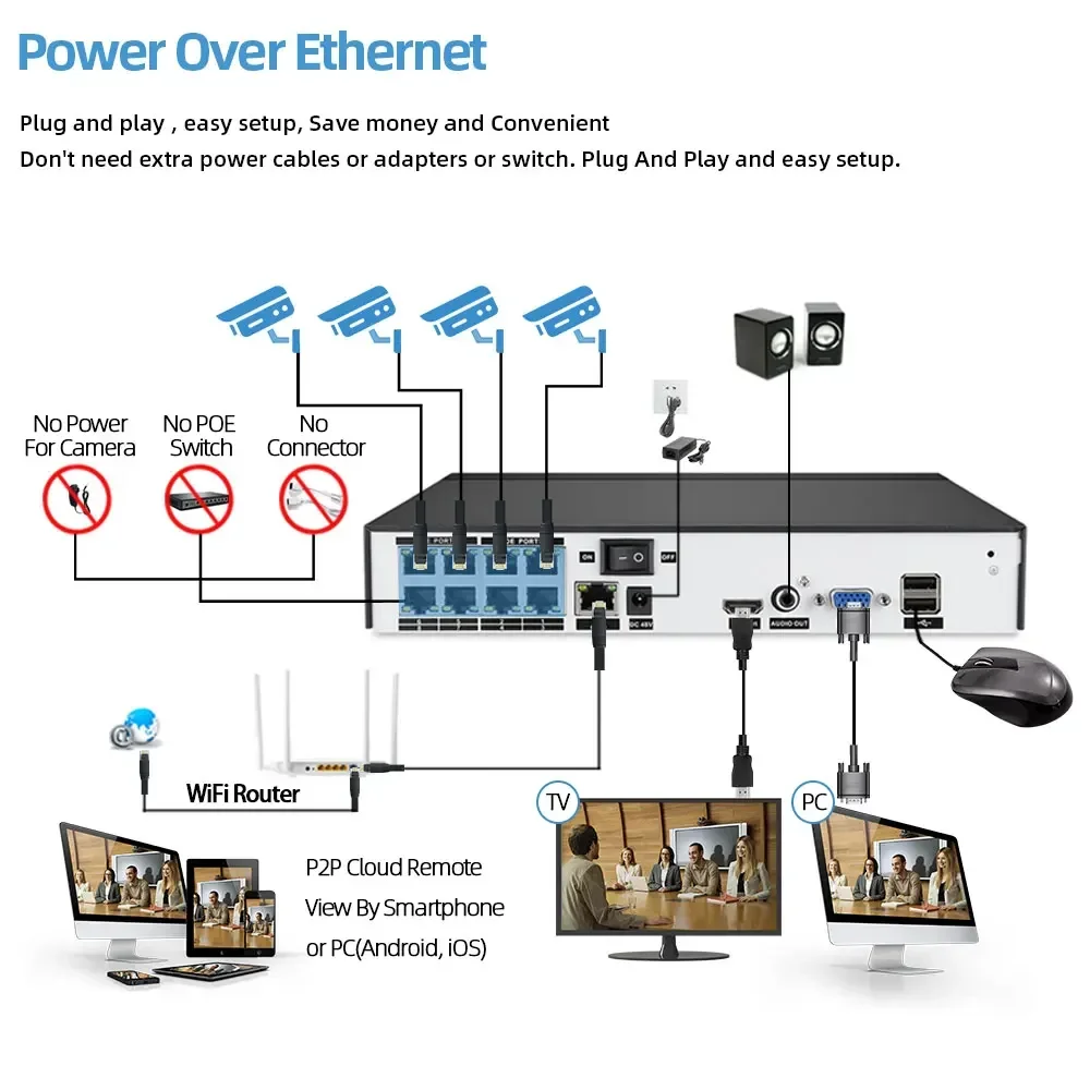NO extra power cables or adapters are needed and just by connecting a IP camera to NVR with a single cable, you can easily complete the installation without the knowledge about the computer or network and start enjoy the super easy monitoring among your smart-phone, tablet or PC.