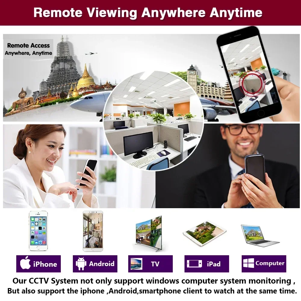 Easy setting , just 4 steps for mobile phone viewing,View live video of the system from anywhere and anytime via you smarphone, table or PC with advanced P2P technology, you are able to remote access your system in minutes or less, no portforwarding needed, remote access has never been so easy!!!