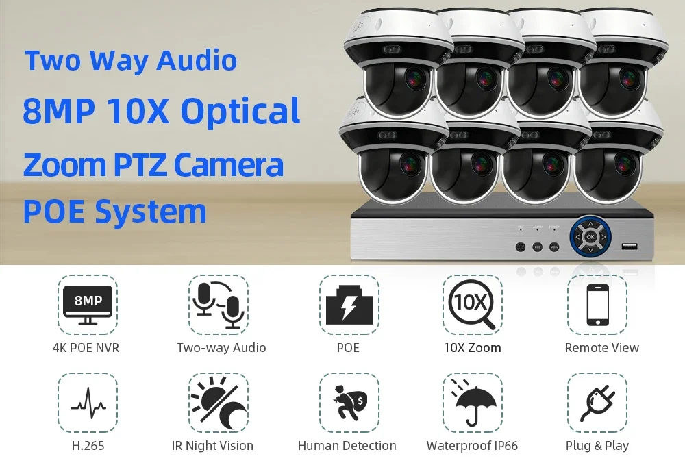 2/4/6/8/10 x H.265 HD 8mp POE IP indoor outdoor IR Day Night vision weatherproof cameras;