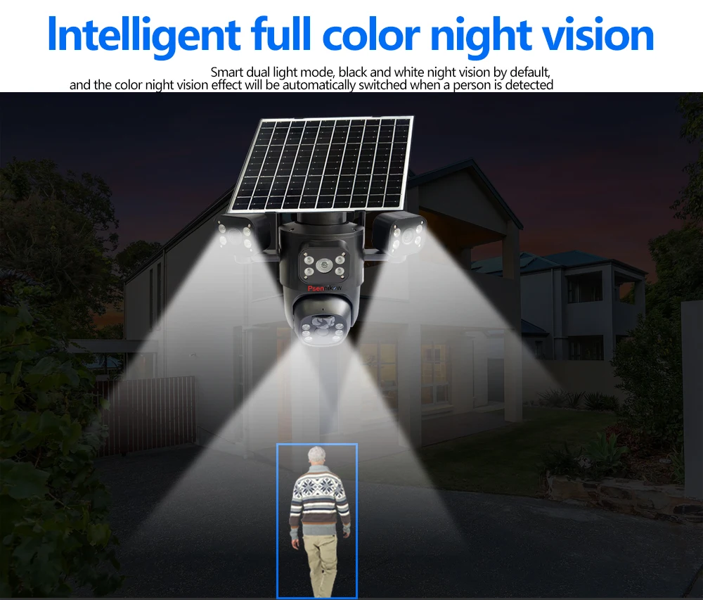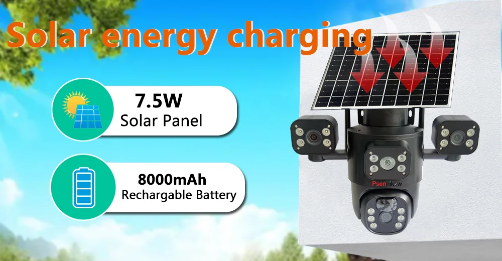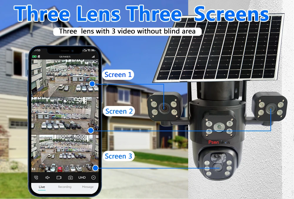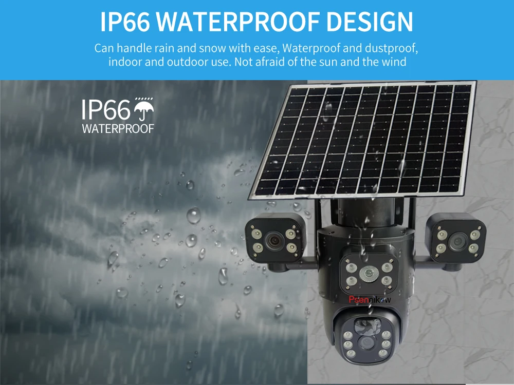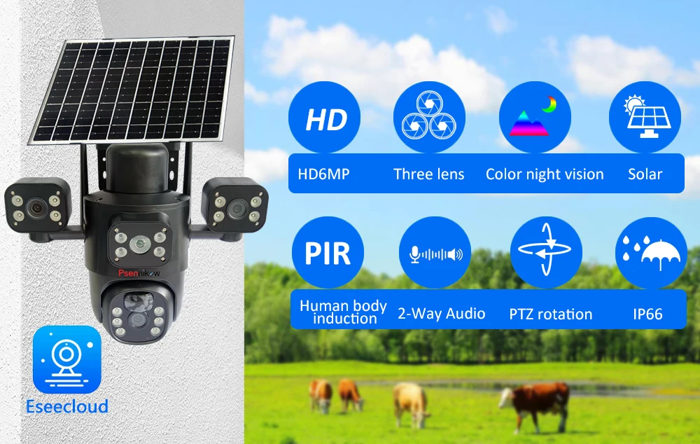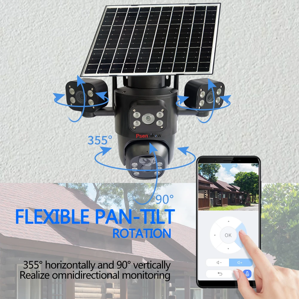 4K 6MP Solar Camera 4G SIM/WIFI Three Lens Security Outdoor Recording Humanoid Tracking Color Night Vision PIR Detect Camera