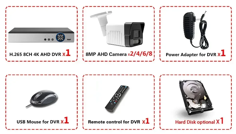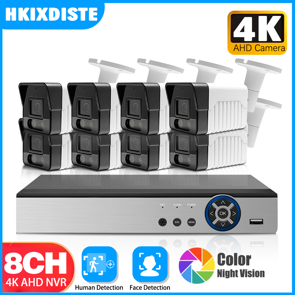 4K 8CH DVR CCTV Video Surveillance Set AHD Cameras Kit Bullet Camera Color Night Vision HD Video Smart 6in1 DVR Security System