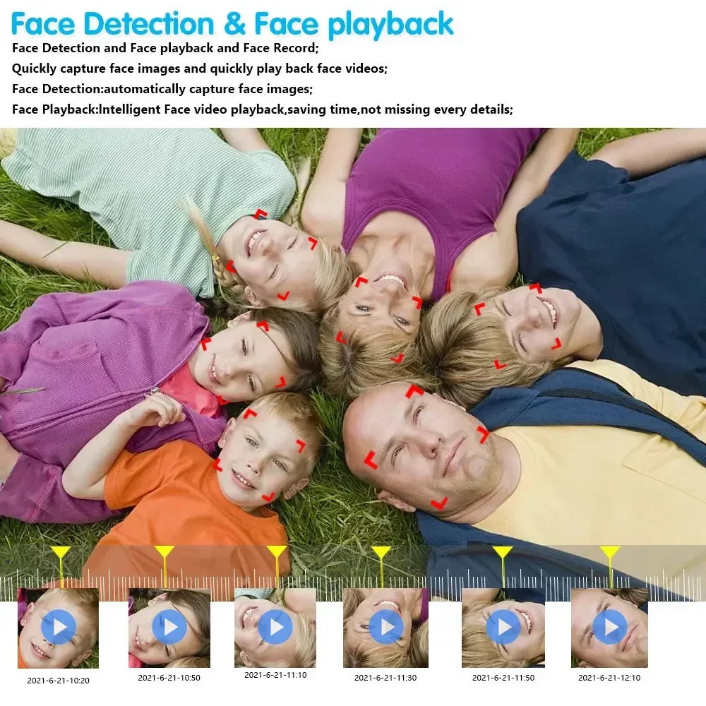 Face Detection and Face playback and Face Record;Quickly capture face images and quickly play back face videos;Face Detection:automatically capture face images;Intelligent Face Playback: Intelligent Face video playback, saving time, not missing every details.