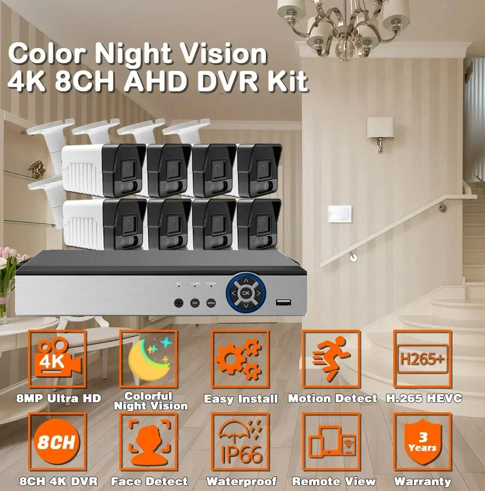8CH DVR CCTV Video Surveillance Set 4K AHD Cameras Kit Bullet Camera Color Night Vision HD Video Smart 6in1 DVR Security System