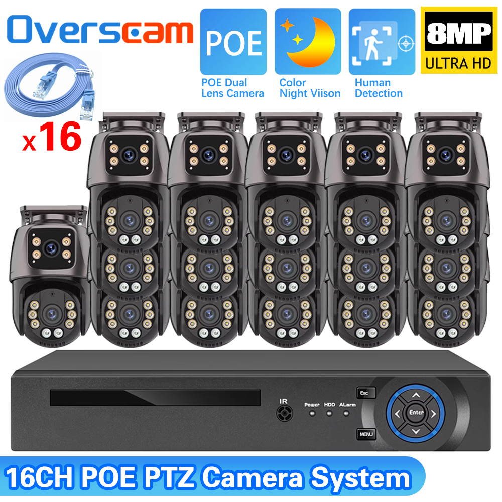 4K 8MP Dual Lens Dual Screen POE PTZ IP Camera CCTV Surveillance Kit P2P 16CH NVR PTZ IP Cameras Security XMEYE ICSee System