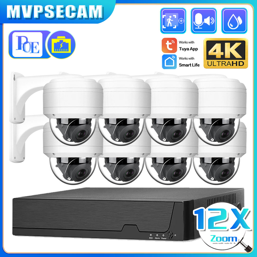 4K Tuya POE Surveillance System 12X PTZ Zoom 8MP Audio Record CCTV POE AI Security IP Camera 8CH P2P NVR Video Surveillance Kit