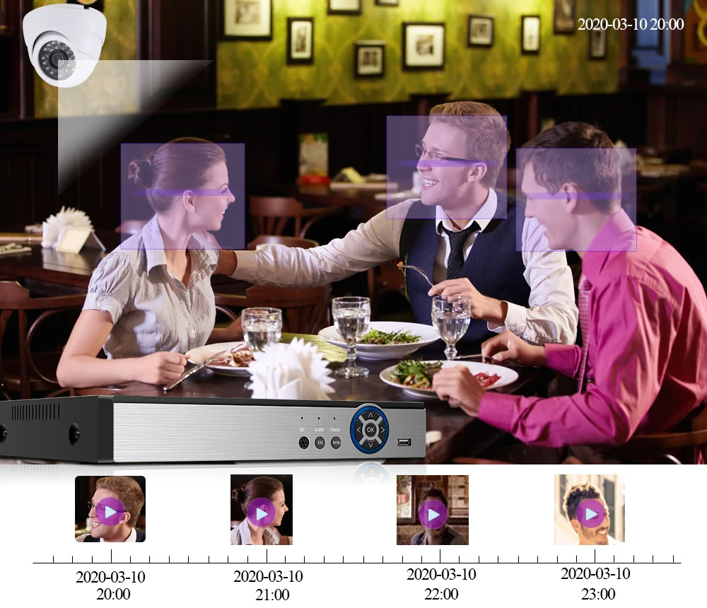 You can easy find the video footage you'd like to playback, Smart playback available with customizable searching area, playback time is greatly reduced by speeding through unimportant videos.