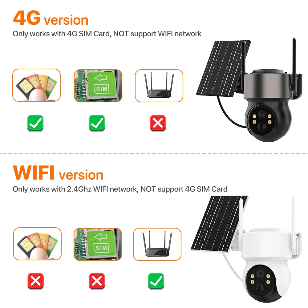● 4G Cam: Only works with 4G SIM Card,