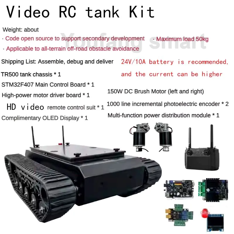 50kg Load TR500 RC Tank Rubber Tracked Chassis DC Motor Carbon Steel Suspension STM32 System Robot Car for RC Tank to FS Handle