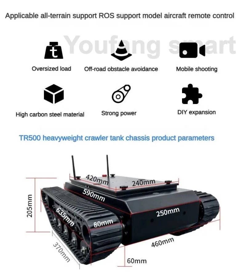 – Product Name: TR500 heavy-duty tracked tank chassis