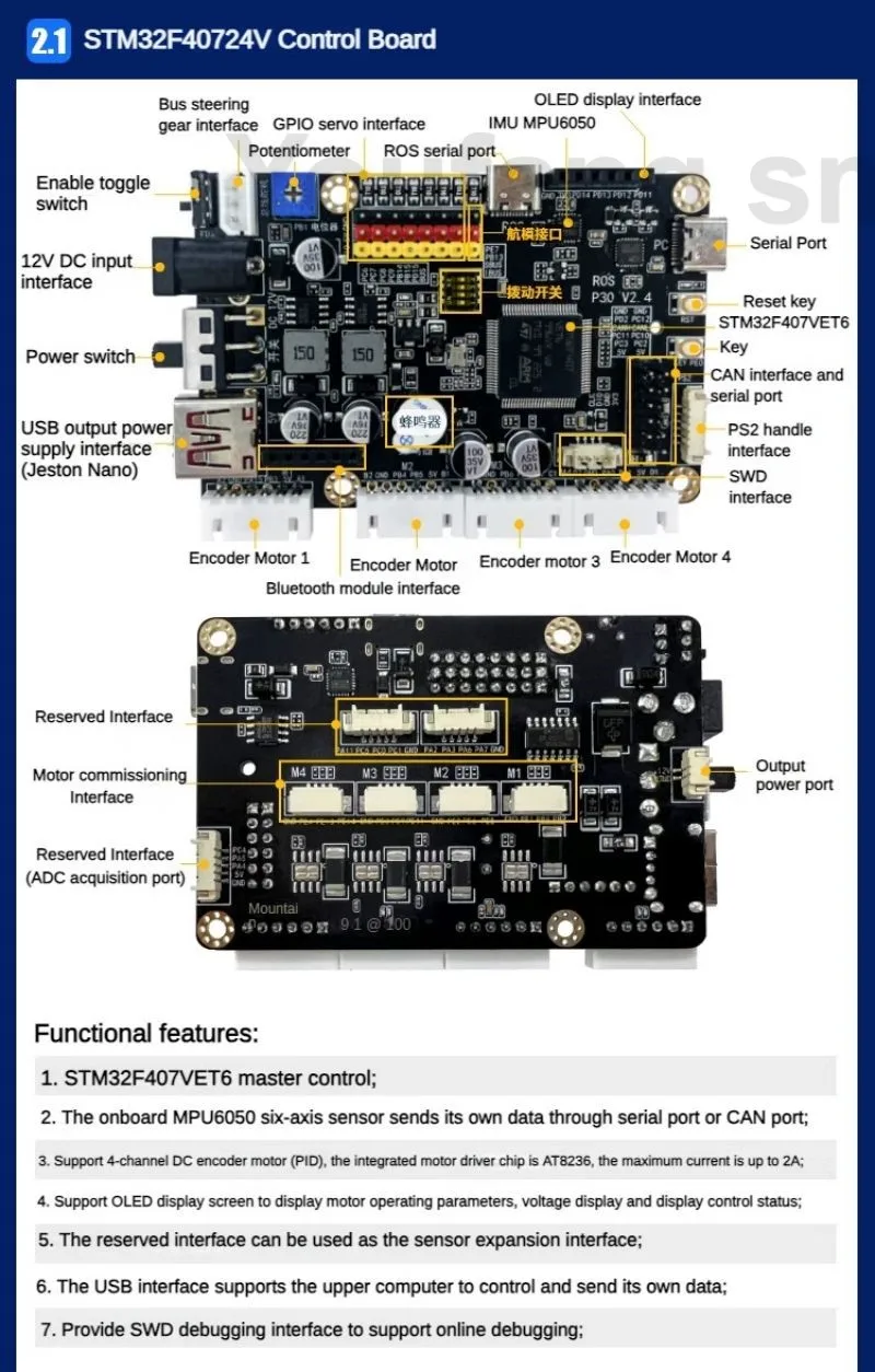 – Chassis load capacity 50kg, off-road obstacle avoidance, mobile shooting