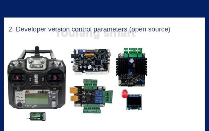 – Version with Control System: The default control system is 2.4GHz wireless remote control system, which is equipped with six channel aviation model remote control by default, and the control distance is 400m + measured in the open area;