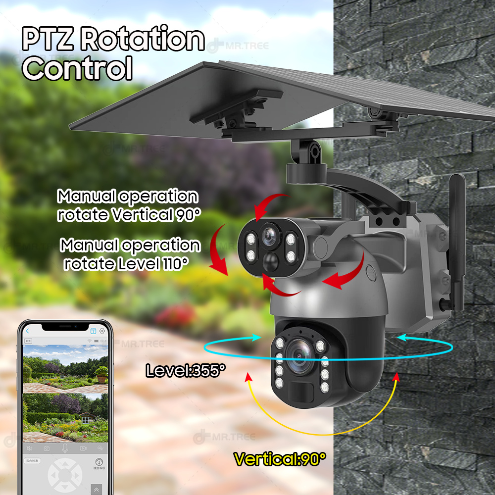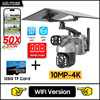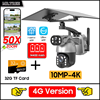50XZOOM Solar Camera 4G SIM/WiFi Dual Lens Outdoor Security Camera with Night Vision,Waterproof Wireless Surveillance for Garden