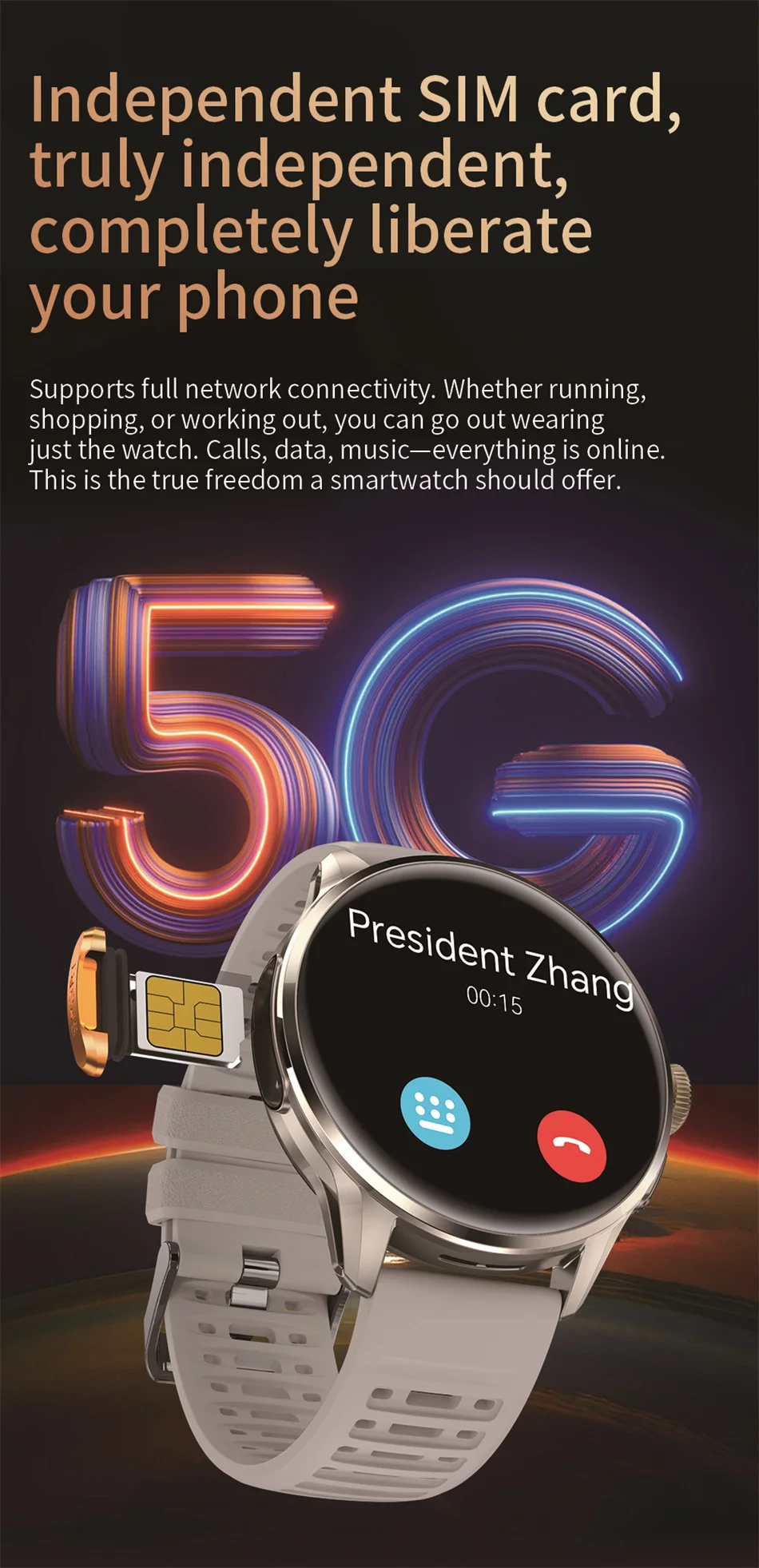 5G/4G Full Network Smart Watch 1.60 inch AMOLED Screen Video Call 3GB+32GB RAM Google Play WIFI GPS Compass Sim Card Smartwatch