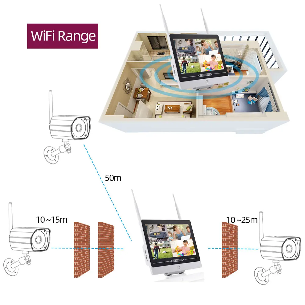 Wireless connections between cameras and NVR,Up to 50 Meters Wireless Transmission(no obstacle)