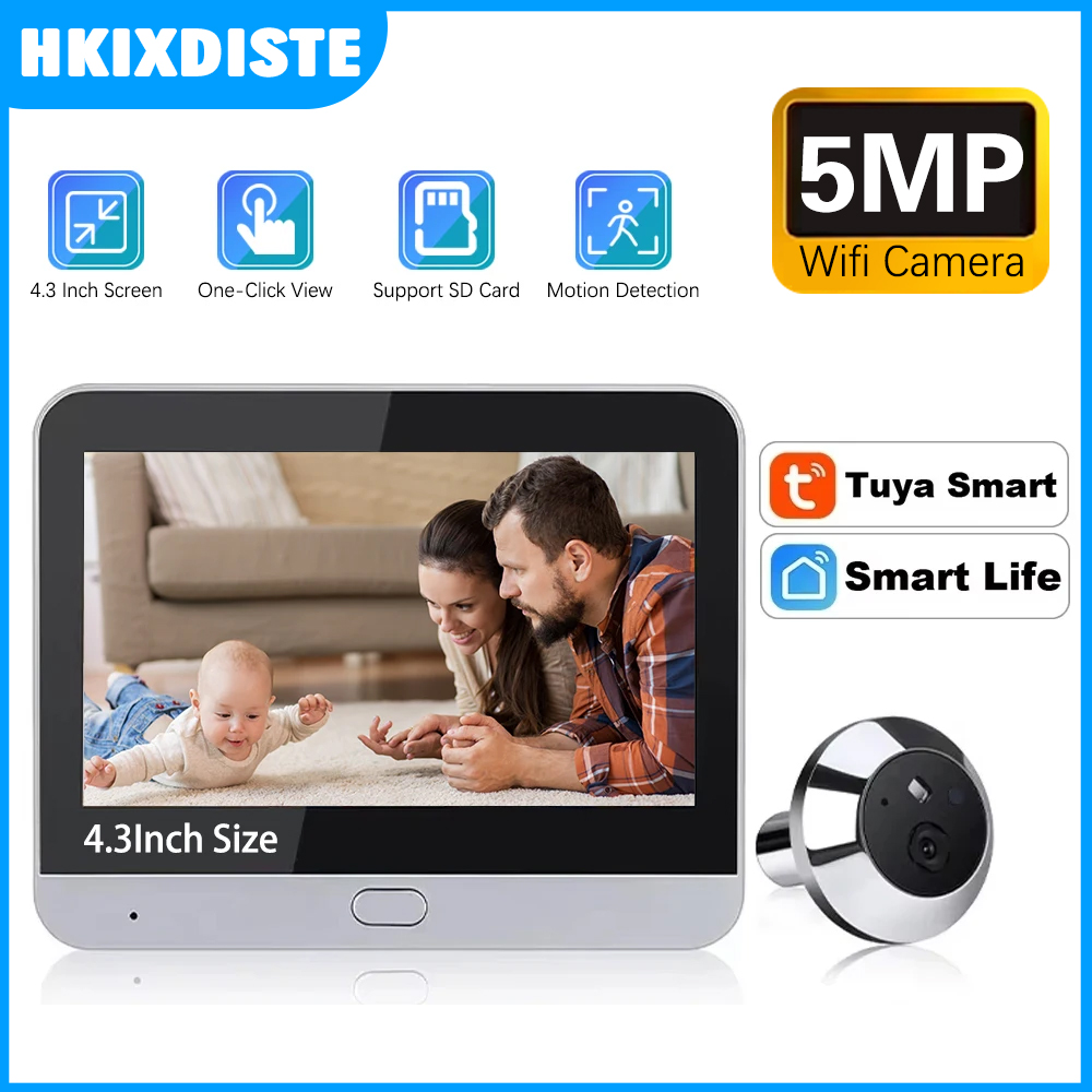 Mini 5MP Tuya Smart Life Home Digital Viewer Peepholes Door Eye WiFi IR No Red Exposure Night Vision Camera 4.3Inch Baby Monitor