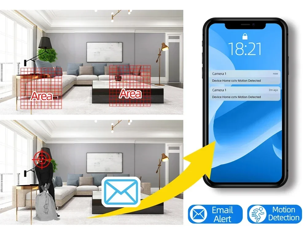 When you are outside or at home, it will send alert notifications to your phone once it detected any movement in the monitoring area to keep your home safe. No matter where you are, this security camera will be a reliable protector for your home and let you be assured.