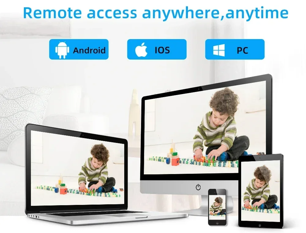 Support ios, Android,Windows PC. With the free app Eseecloud. you'll know that's happening even when you're not around, Receive notifications and view live or recorded footage right from your phone.