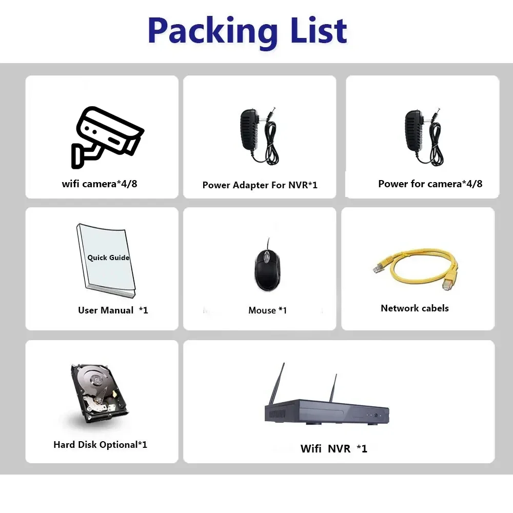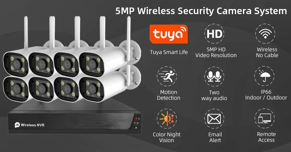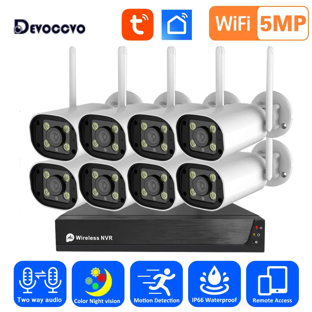 5MP Tuya Wireless Security Camera System 8CH WiFi NVR Kit Outdoor Color Night Vision 4 Channel CCTV Surveillance Camera Kit 4CH