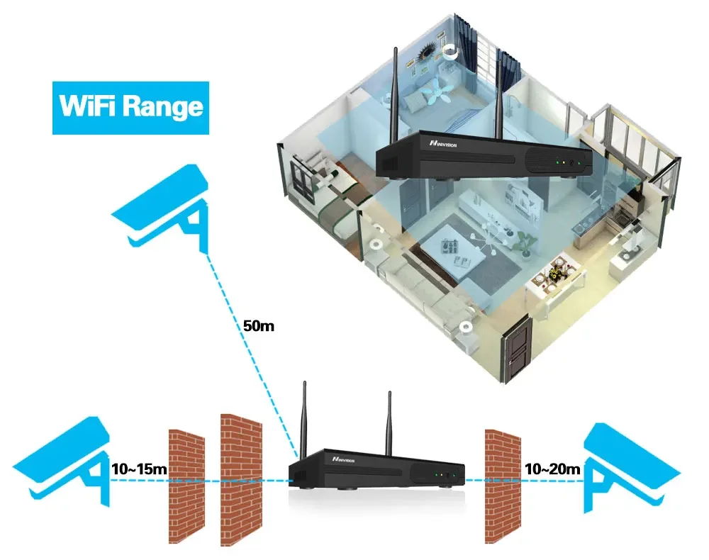 Wireless connections between cameras and NVR,Up to 50 Meters Wireless Transmission(no obstacle.
