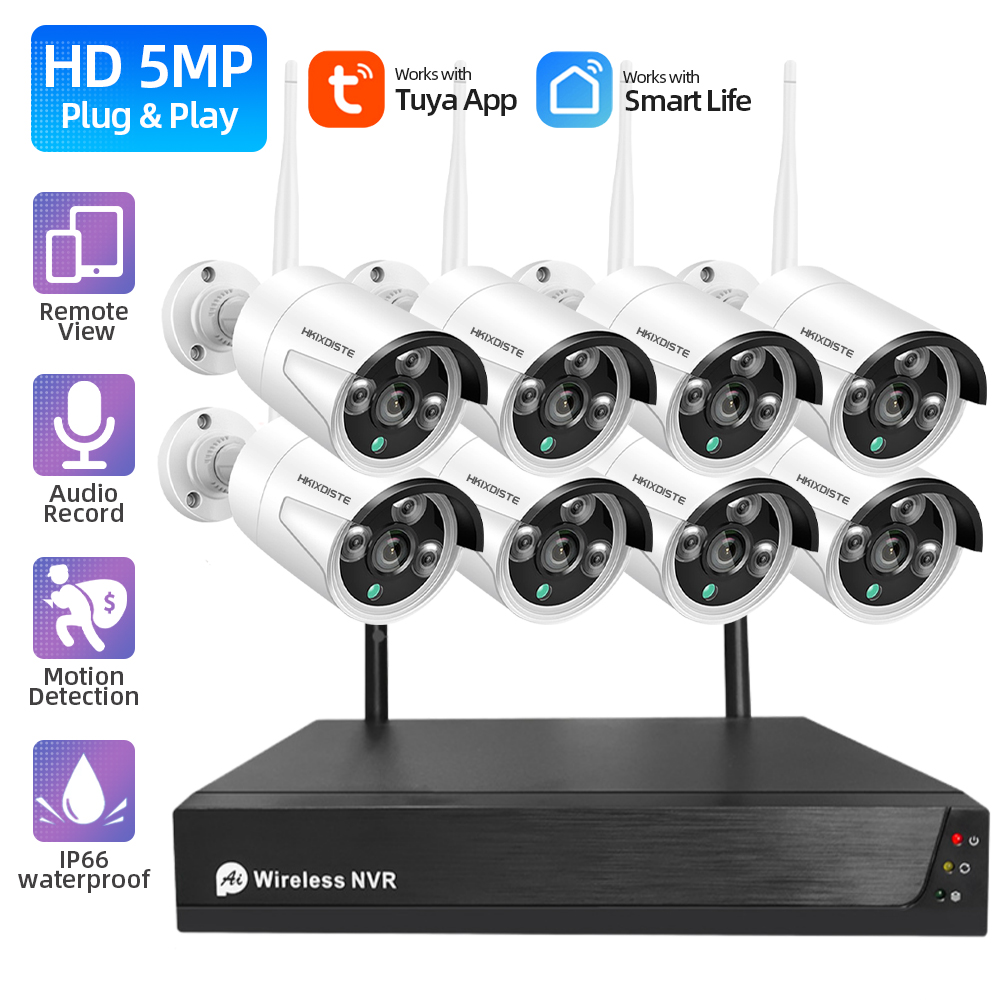 5MP Wireless Security Camera System 8 Channel Tuya Wifi NVR Kit 2K Outdoor Waterproof CCTV IP Camera Video Surveillance Kit 8CH