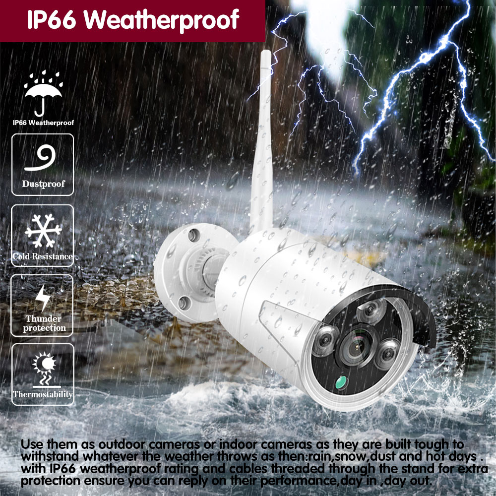 Use them as outdoor cameras or indoor cameras, as they are built tough to withstand whatever the weather throws as then:rain,snow,dust and hot days .with IP66 weatherproof rating ,and cables threaded through the stand for extra protection ,ensure you can reply on their performance,day in ,day out.Our camera adopts heavy-duty metal housing,professional IP66 weatherproof,Providing stable performance both indoor and outdoor.