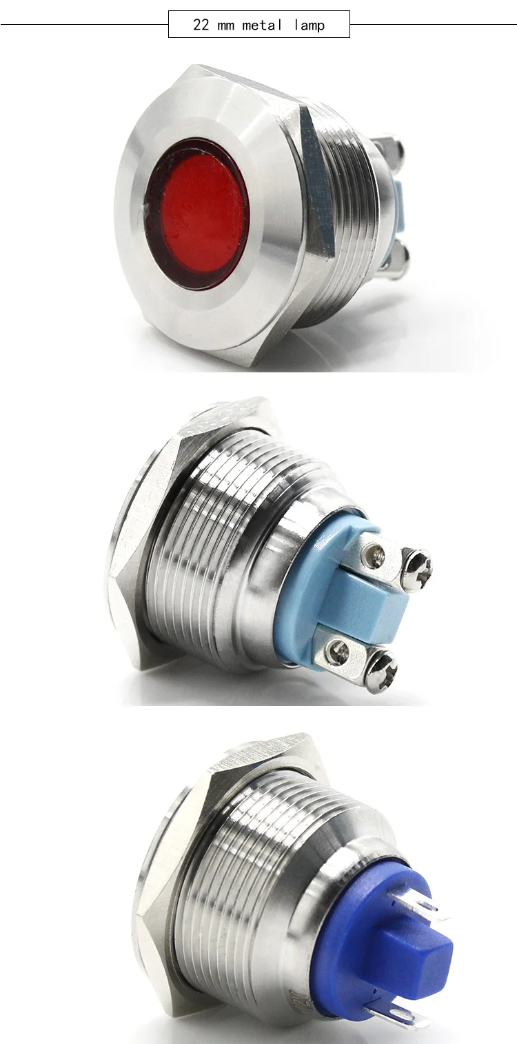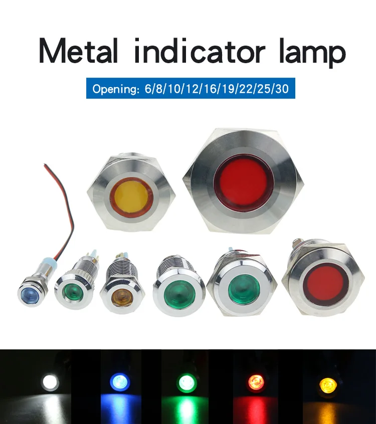 5PCS Metal LED Warning Indicator Light, Signal Lamp, 6V, 12V, 24V, 110V, 220V, 6mm, 8mm, 10mm, 12mm, 16mm, 19mm, 22mm,
