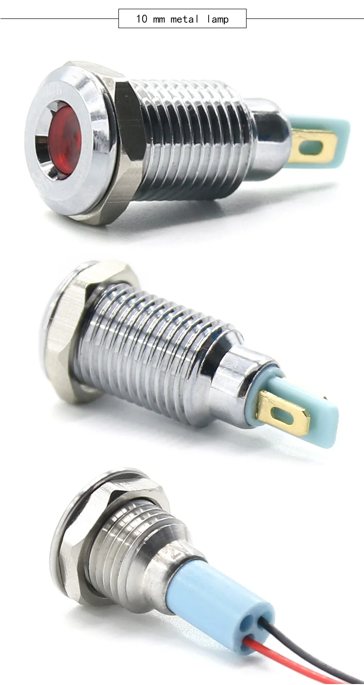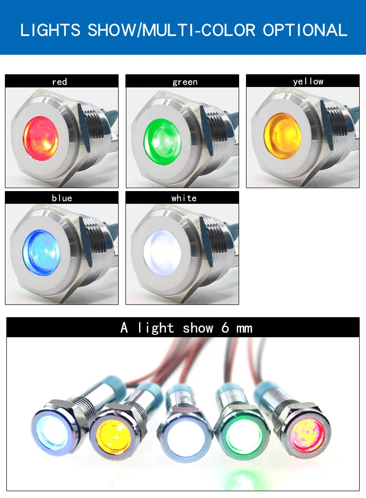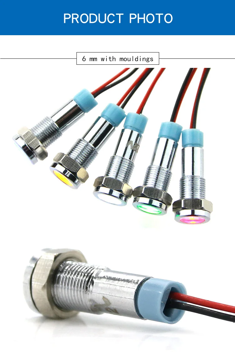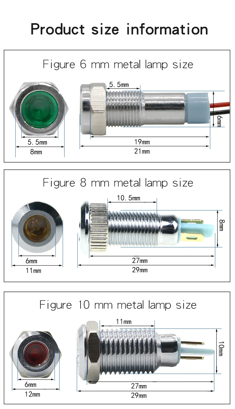 Wire length: 6mm indicator light with 15mm long wire, other sizes without wire.