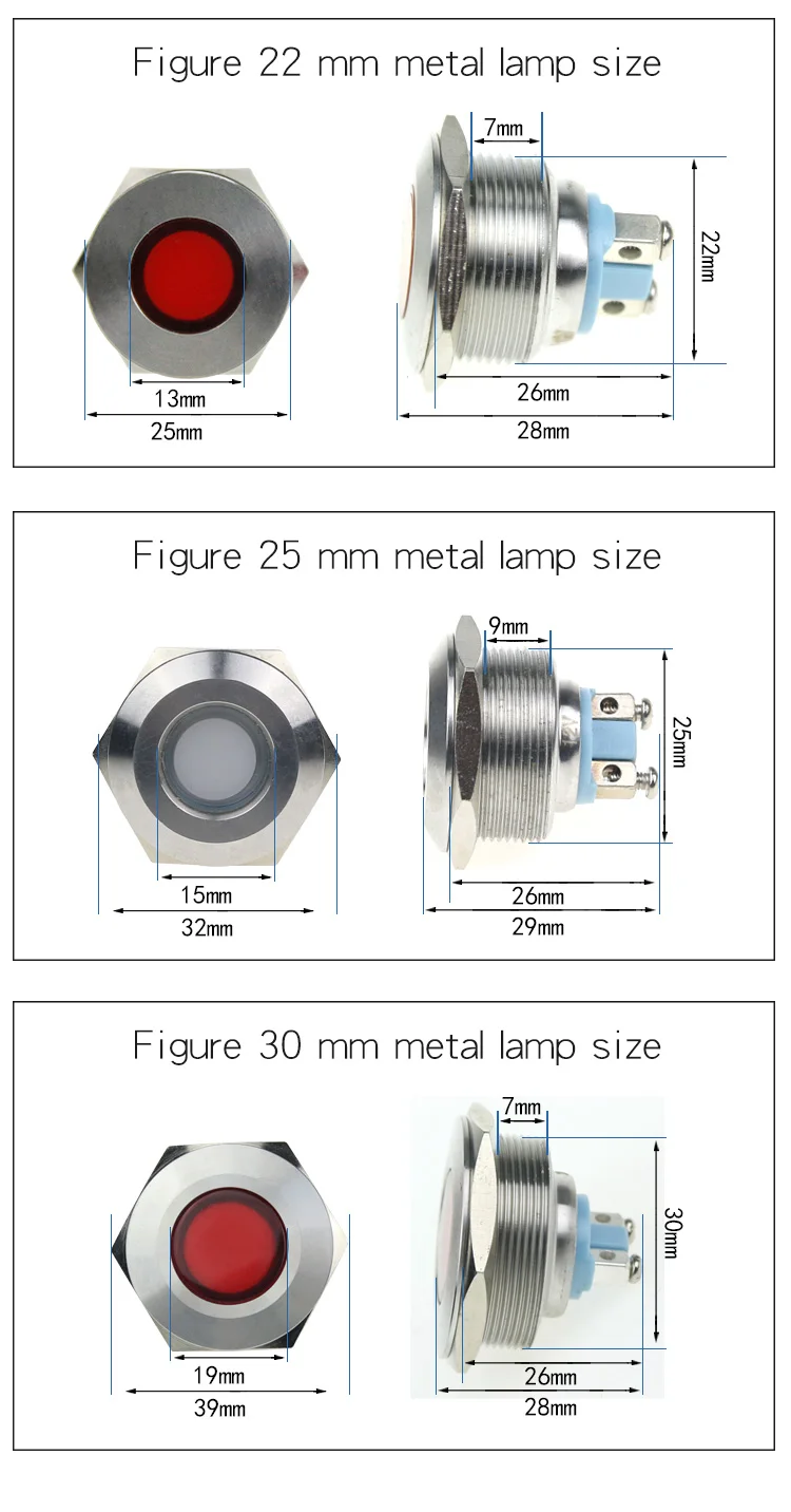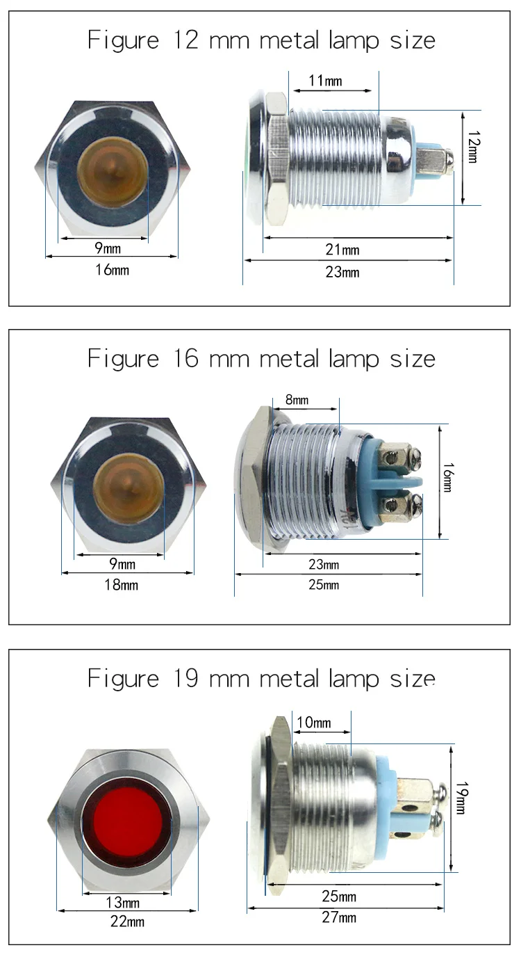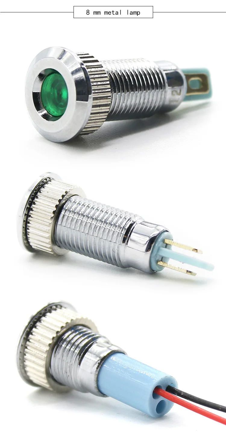 Wire length: 6mm indicator light with 15mm long wire, other sizes without wire.