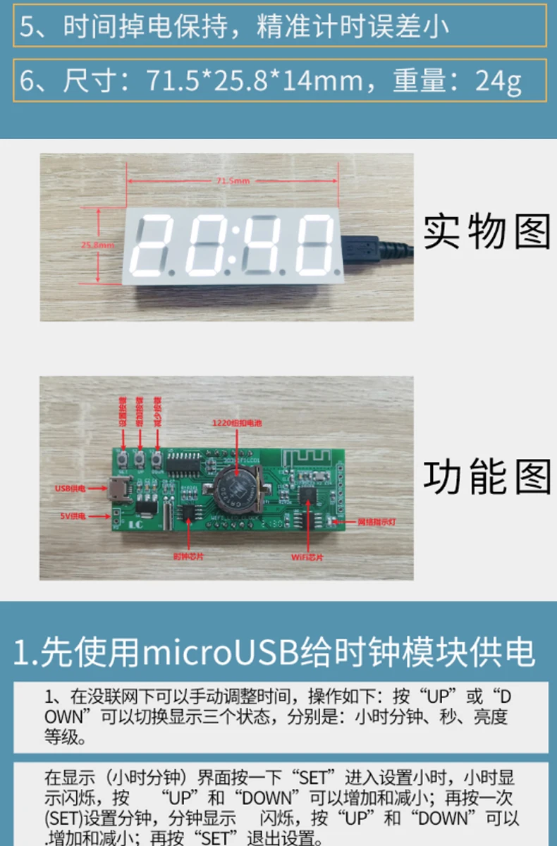 5pcs WiFi digital tube clock module 0.8 inch, automatic clock DIY digital electronic clock