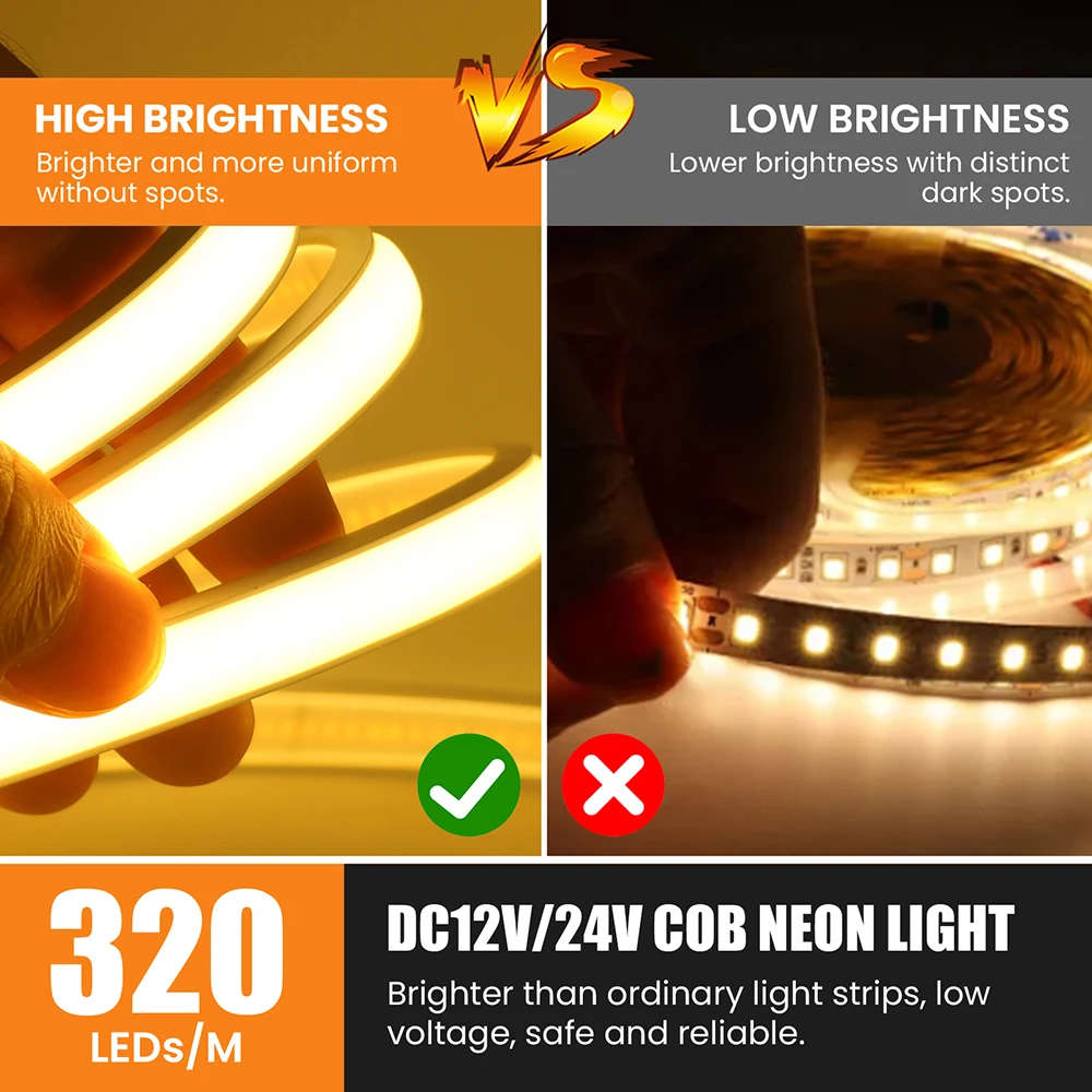 4. Superior Flexibility: More bendable and malleable than traditional SMD LED strips, adapting to curved or irregular surfaces effortlessly.