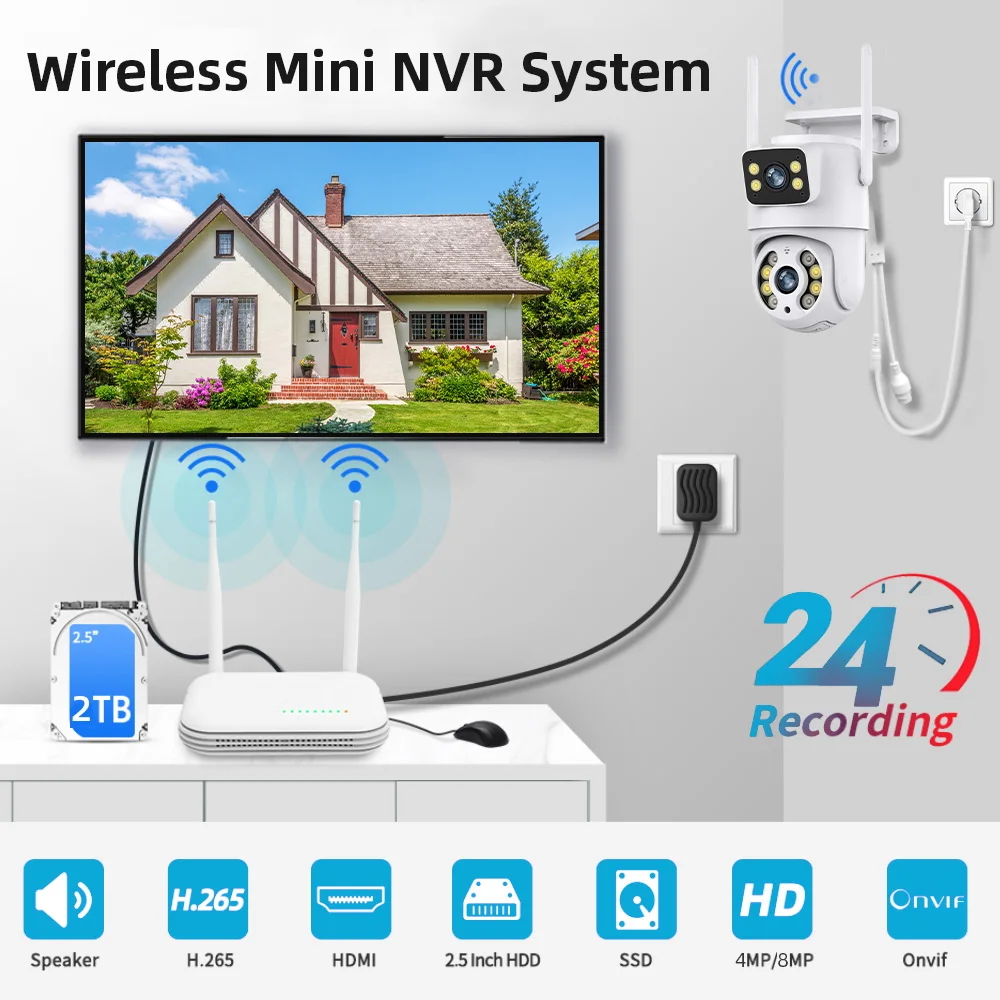 6MP CCTV System WiFi Camera NVR Kit Security Audio IP Cameras With Dual Lens Wireless 8CH NVR Video Surveillance Set ICsee
