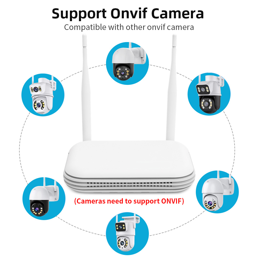 7. Support for Wired and Wireless connections; WIFI NVR built-in Micro SD card slot, supports SSD interface, supports up to 128GB Micro SD card and 8TB 2.5″ HDD (optional at time of purchase)