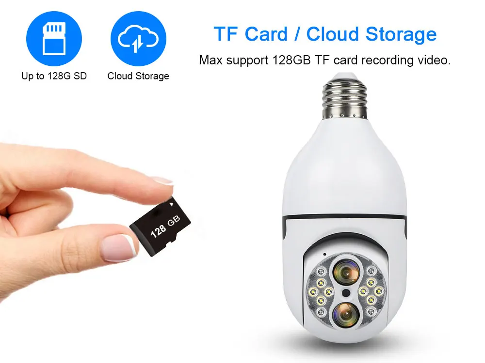 The camera supports up to 128GB TF card local backup and also provides cloud storage service(Need to pay extra cost)