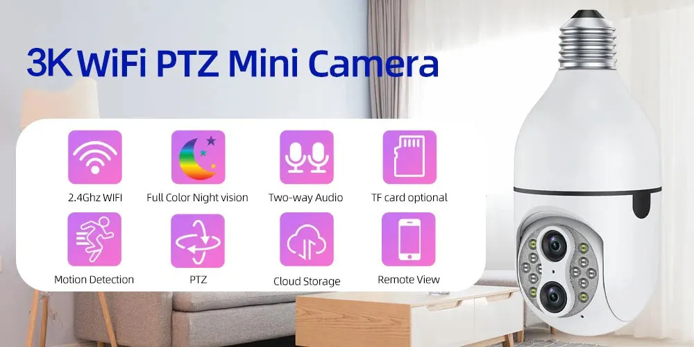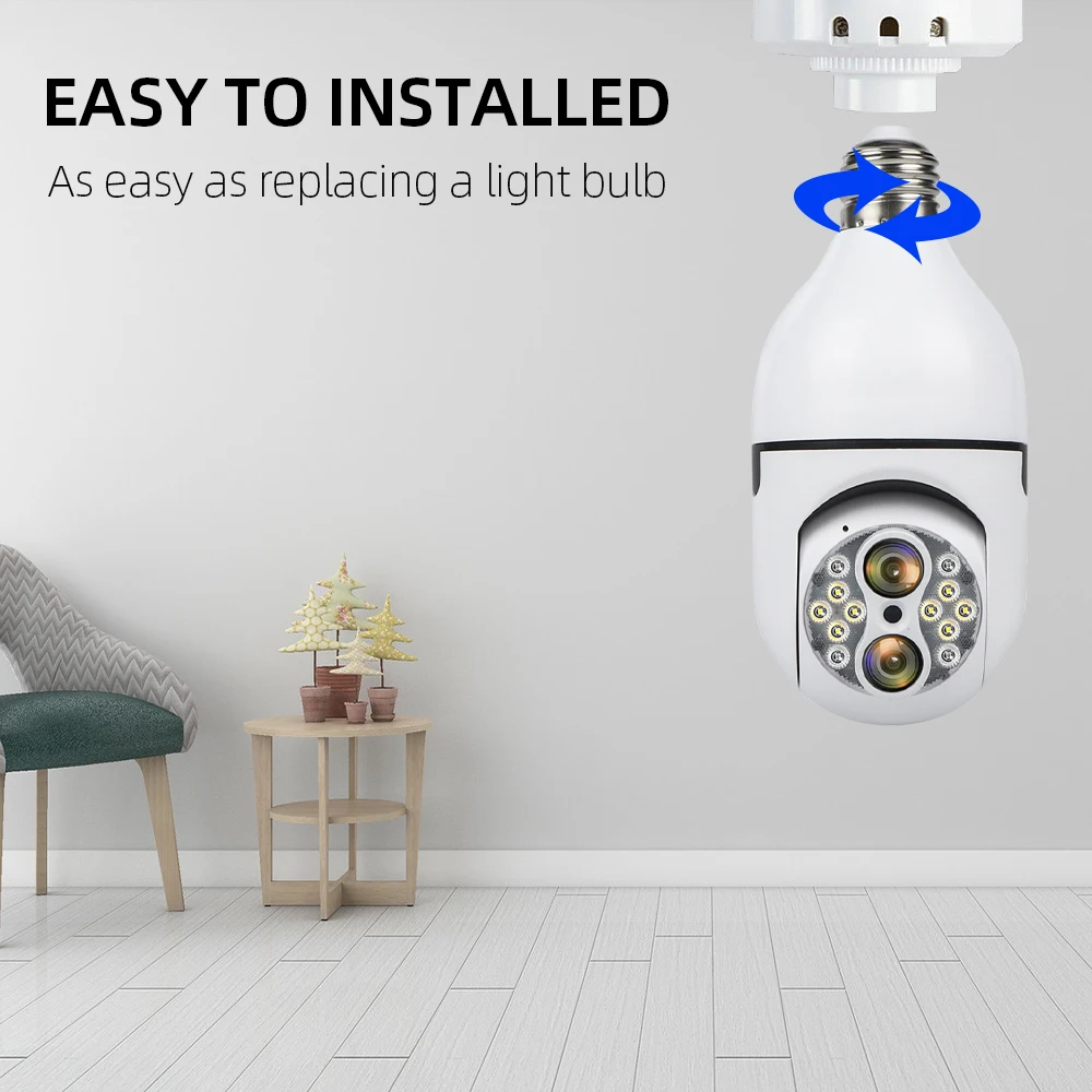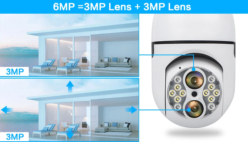 6MP HD Dual Lens Wireless Security Camera Auto Tracking 10X Zoom 355° Panoramic WiFi PTZ IP E27 Light Bulb CCTV WiFi Cam IPC360