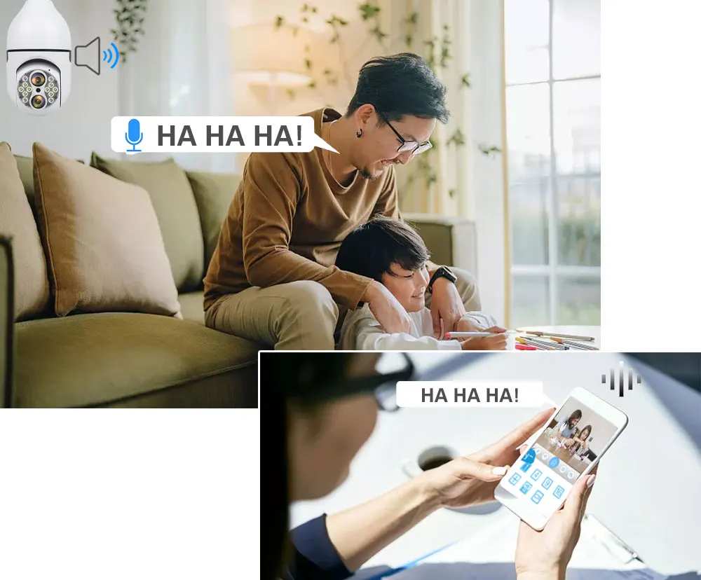 Camera is built with microphone and speaker. So you can talk to your kids via your Smartphone remotely whenever you want.