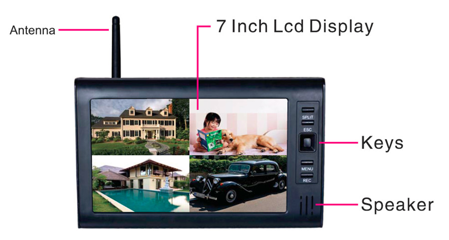 this home security camera system wireless support speaker and 7 inch LCD display ,wireless monitor is with wifi antenna