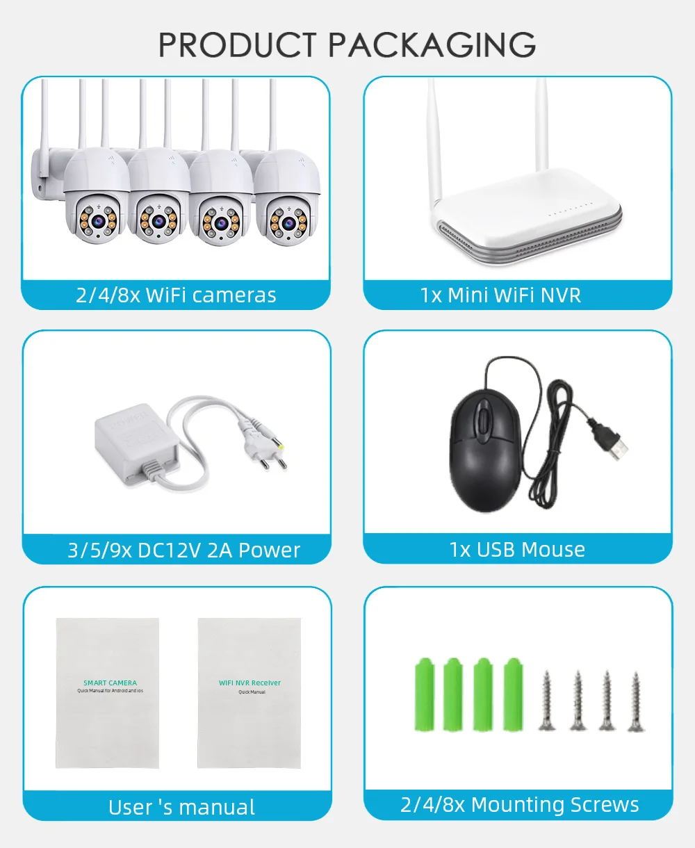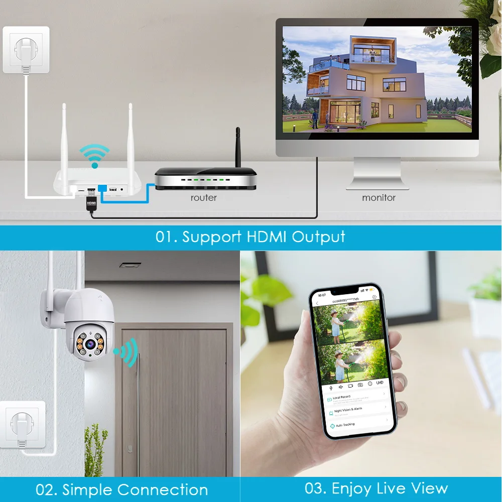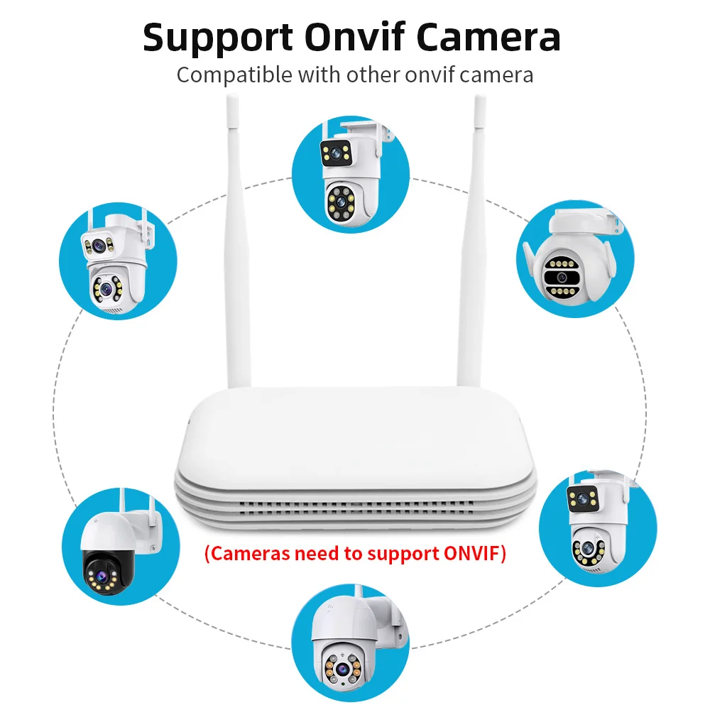 7. Support for Wired and Wireless connections; WIFI NVR built-in Micro SD card slot, supports SSD interface, supports up to 128GB Micro SD card and 8TB 2.5″ HDD (optional at time of purchase)