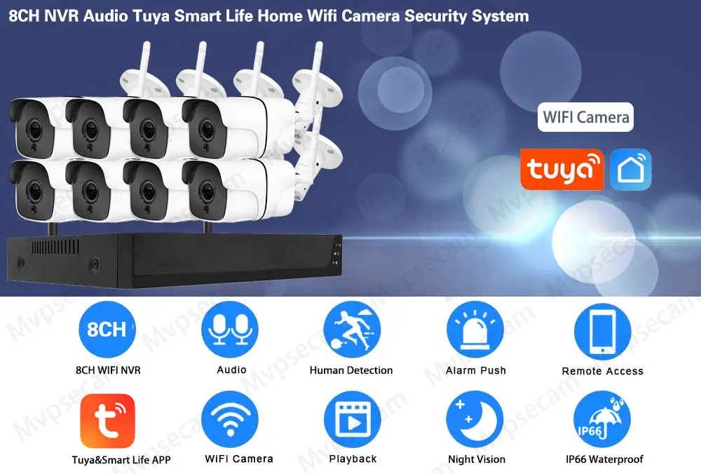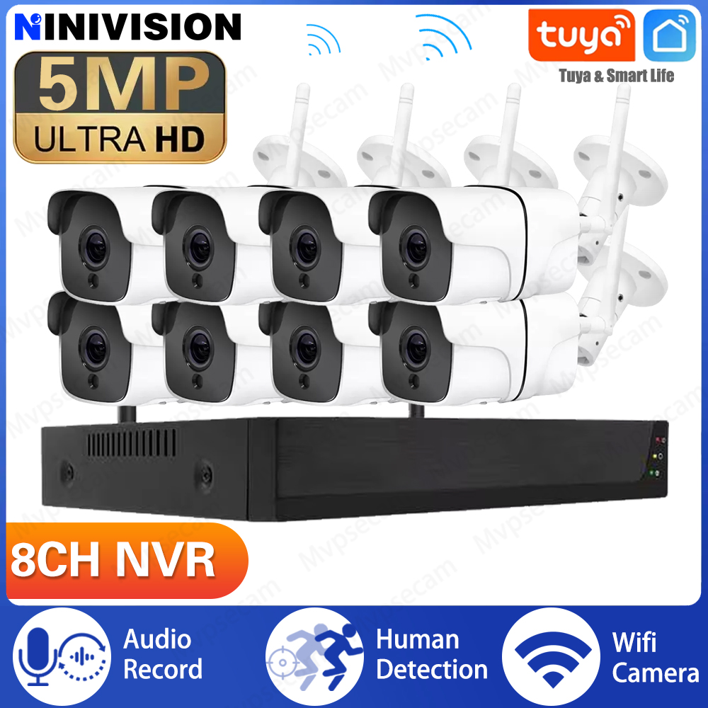 8CH 5MP FHD Wireless Video Security System TUYA NVR 4/8PCS 5.0MP Bullet IP Camera Outdoor CCTV Surveillance Smart Life Home Kit