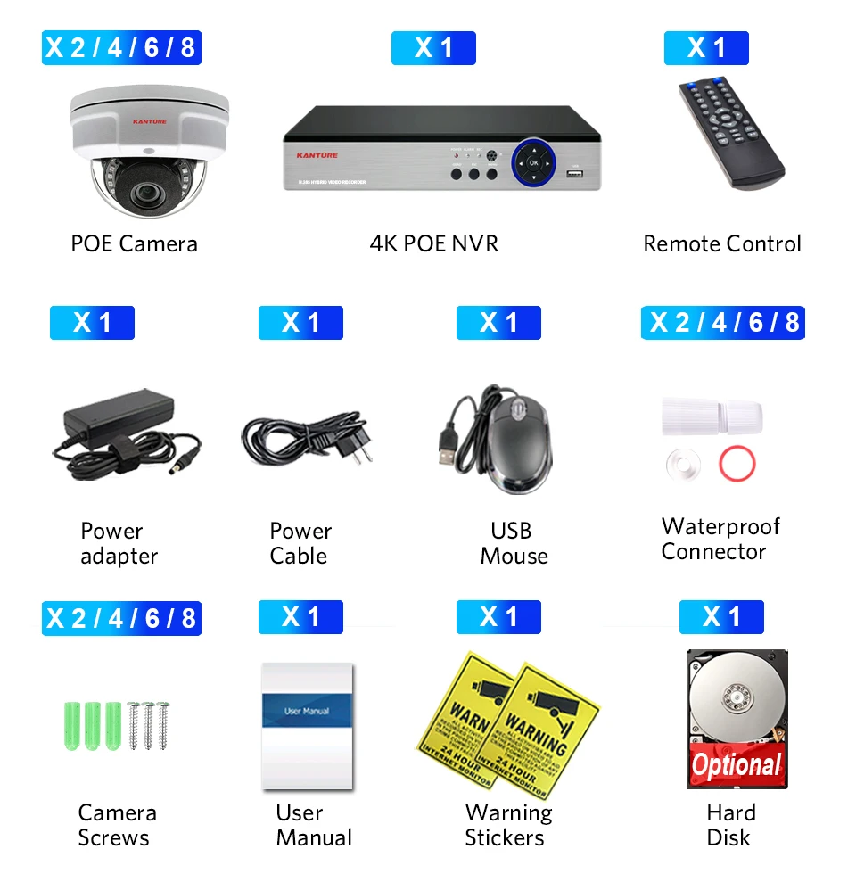 2/4/8*H.265 4K 5X Optical Zoom 2.7-13.5mm Lens Waterproof POE camera