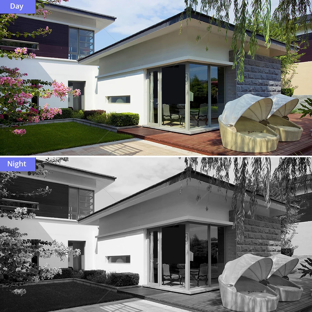 Built-in Smart IR-Cut Filter Switches automatically between day and night to reduce color cast in day time and enhance image brightness at night making sure you can get vivid surveillance footage from dawn to dark
