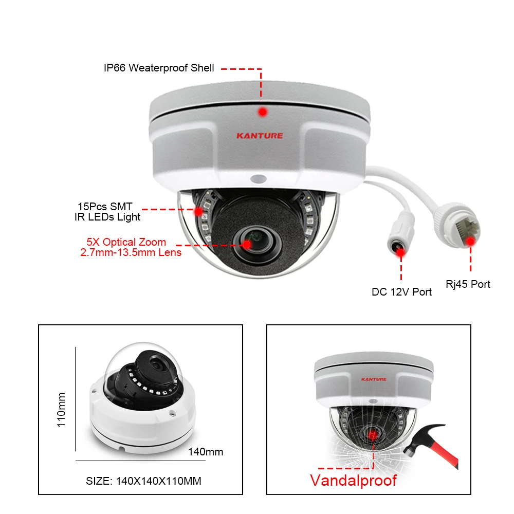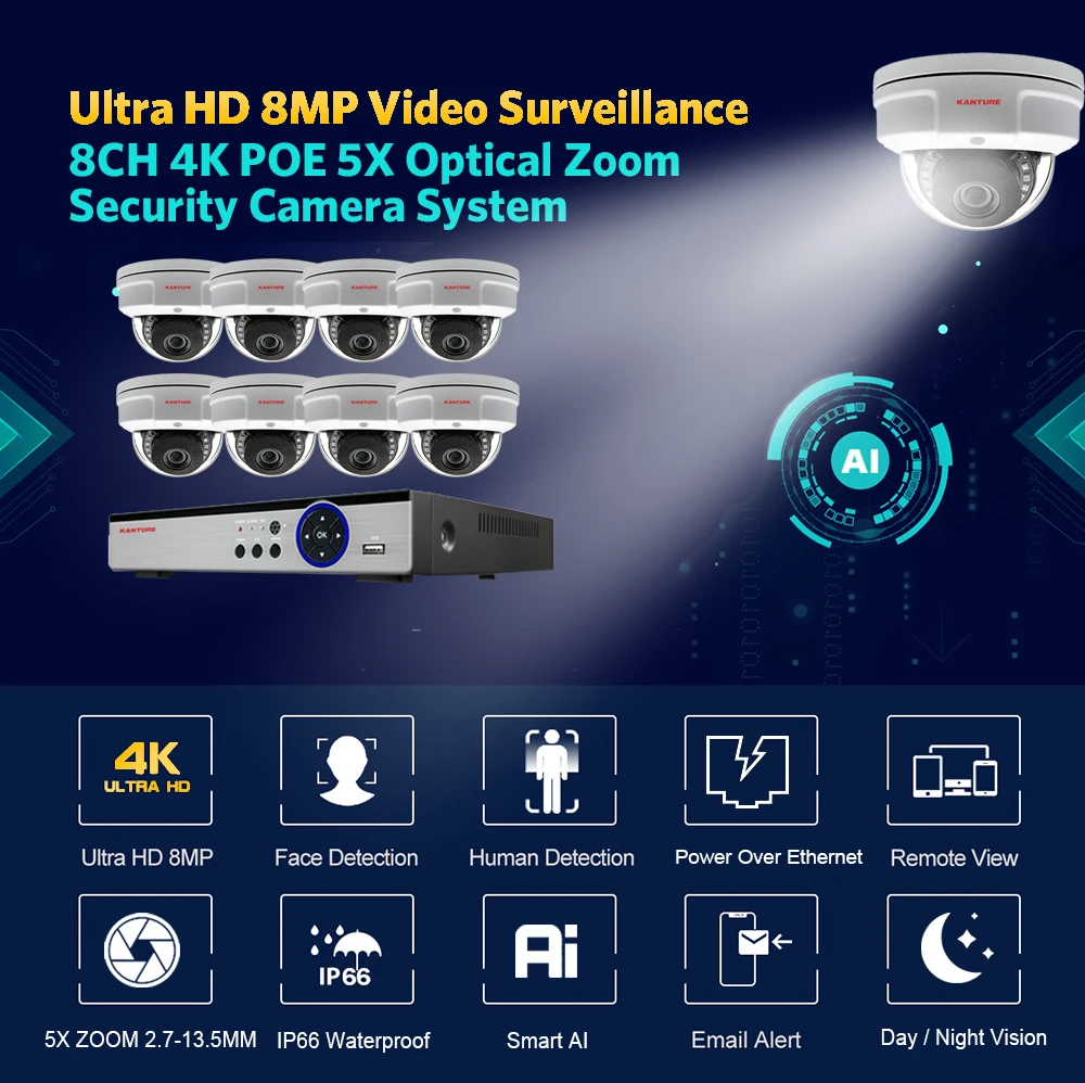 8CH CCTV Security System 4K 2.7-13.5MM 5X ZOOM Dome Camera 8MP Ai Face Detect Waterproof 8CH P2P Video Surveillance NVR Set