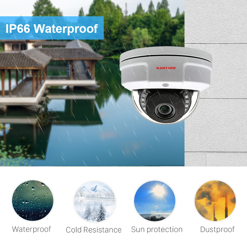 KANTURE surveillance camera has a solid aluminum body and housing,with an IP66 waterproof rating. So you can feel free to install it outdoor, like in your garage, backyard, or anywhere else. It can stand harsh weather conditions, including rain, snow, intense cold and heat(-40℃~50℃).