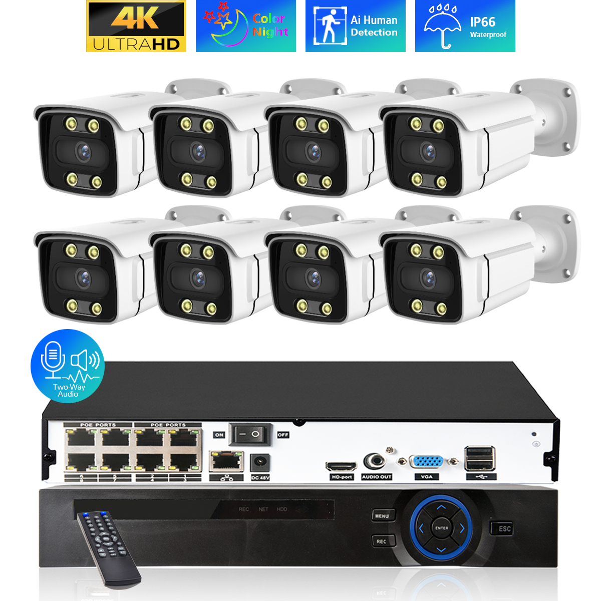 8CH H.265 POE CCTV NVR System 4K Ai Colorful Night Vision Waterproof IP Camera 8MP Two-Way Audio Video Security Camera Set