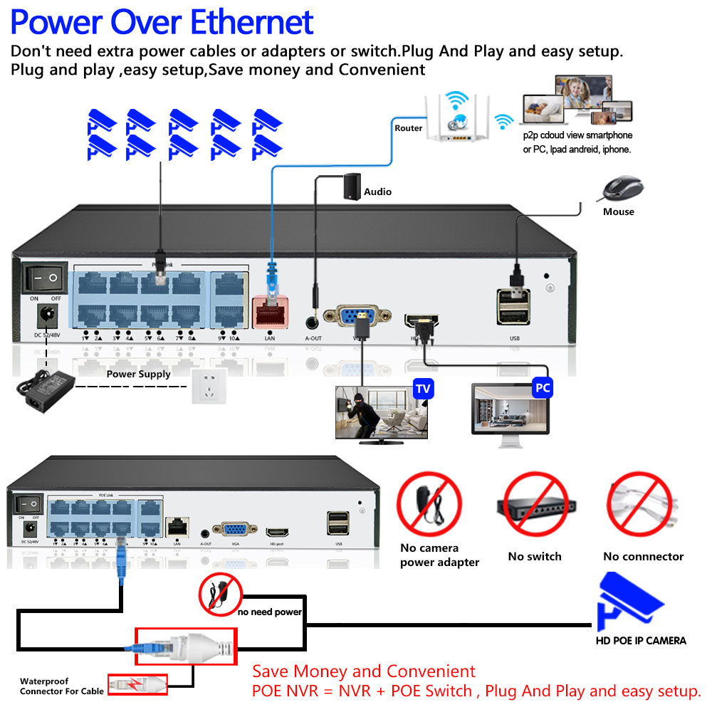 2.Our NVR and Cameras Support Advanced H.265 Video Compression,Power Over Ethernet,Plug and play ,Easy to use;