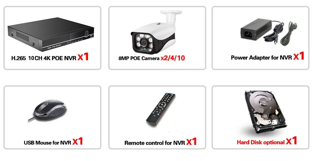 2/4/6/8/10 X HD POE IP 8.0MP indoor outdoor IR Day Night vision weatherproof cameras;