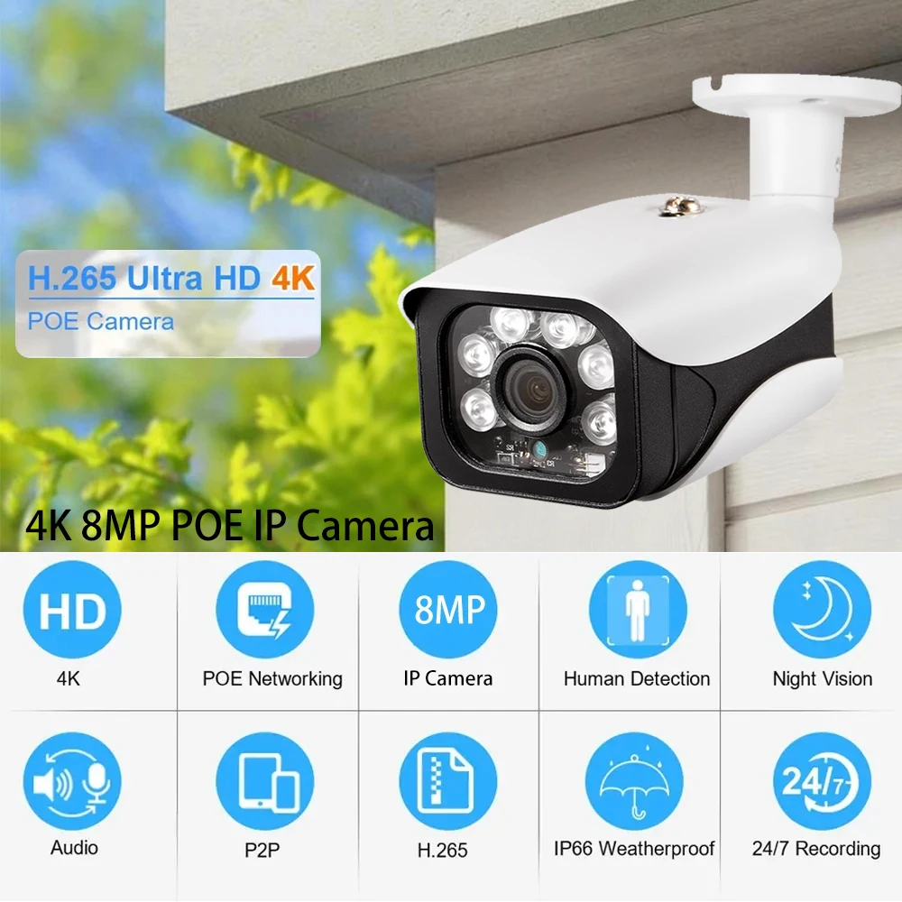8MP 5MP Metal Bullet Security POE IP Camera Support 4K POE NVR Audio Record Outdoor Video Surveillance Kit Home CCTV Camera Set